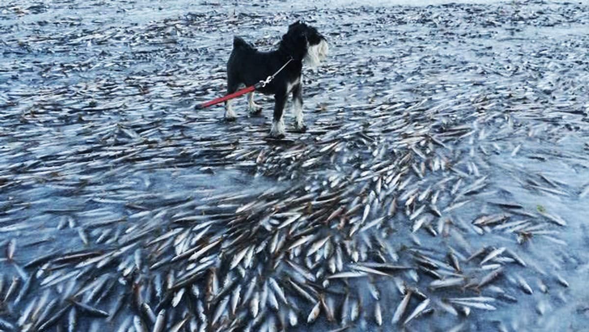 Apparently from this article and some US News Media, the fish were frozen in a cold snap that made ours look nice & cozy.